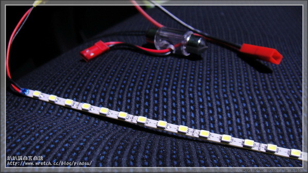 將燈條安裝上去吧~~ 雙尖接頭安裝於駕駛座這邊,LED 橫跨兩邊,電源線收好即可!
