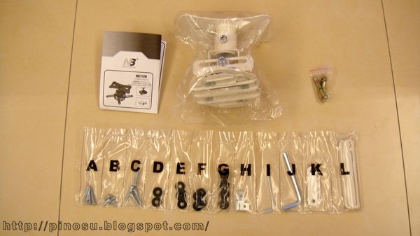 NBT717M 開箱配件一覽,各項小配件都有編碼,按照說明書操作還算挺容易上手安裝的。