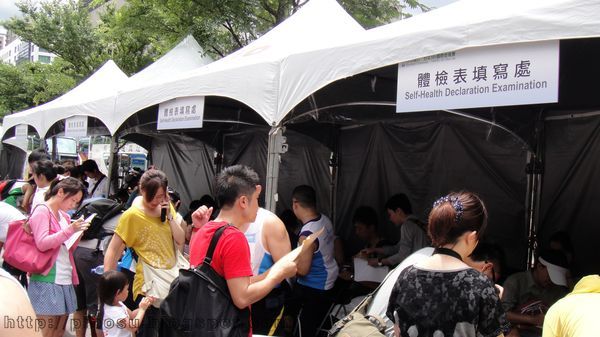 報到現場須先到體檢區領取體檢表格,雖名為體檢但實際上只能算是自我健康評估表,就是勾一勾有無相關病史,最後簽個名而已,自己對自己的身體狀況掛保證!
