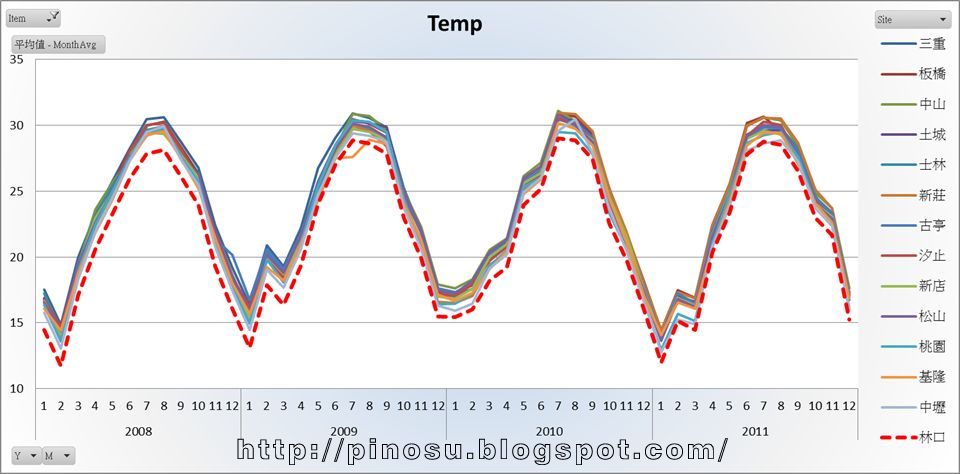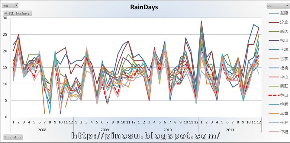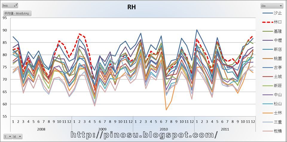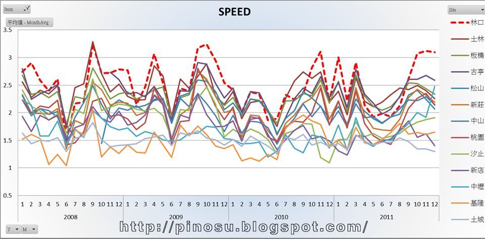 周末在家花了些時間整理了近四年(2008~2011)的環保署空氣品質監測數據,