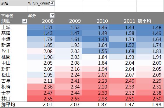 以上不專業分析,旨在比較各地的差異性,其詳盡原始資料收錄於小弟嘔心瀝血整理之 TaiwanAir_2008_2011.xlsx 檔案之中,有需要者請自行服用,期待專業人士能善用此數據做出更精闢的分析與見解供大家參考。