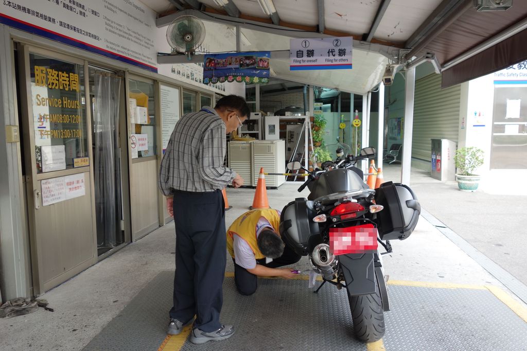 按道路安全規則第44條規定,台灣的大型重型機車車齡五年以上未滿十年者,每年至少檢驗一次;趴趴誠的車也到了該檢驗的時候了,爬了一下文發現驗車項目大概就是車身完整性、引擎號碼、燈號是否正常,其中車身檢查的部分有一個重點項目就是排氣管的防燙片,鍵人認為這一點很詭異,因為買車的時候原廠的排氣管就沒有防燙片了,但是驗車的時候就是要有才會過! 不愧是X島! 怪哉~