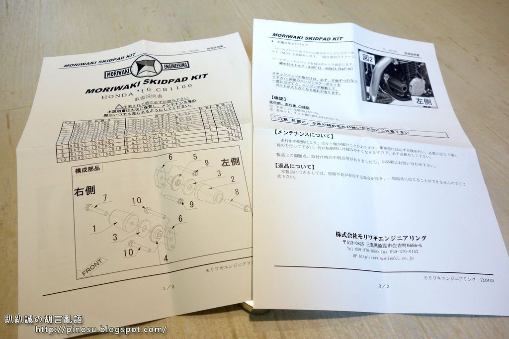 在 [重機] HONDA CB1100 咖啡之路 – WM Aluminum cowl 一文中有提到趴趴誠覺得車子頭罩與引擎保桿不搭,之後便開始著手尋找適用的防倒球,很恰巧在露天上找到有位車友說自己從日本多帶了一組 MORIWAKI 防倒球 回來要便宜賣,算算他賣的含運價格還比日本網站上的訂價還便宜,二話不說就直接下標買了!!