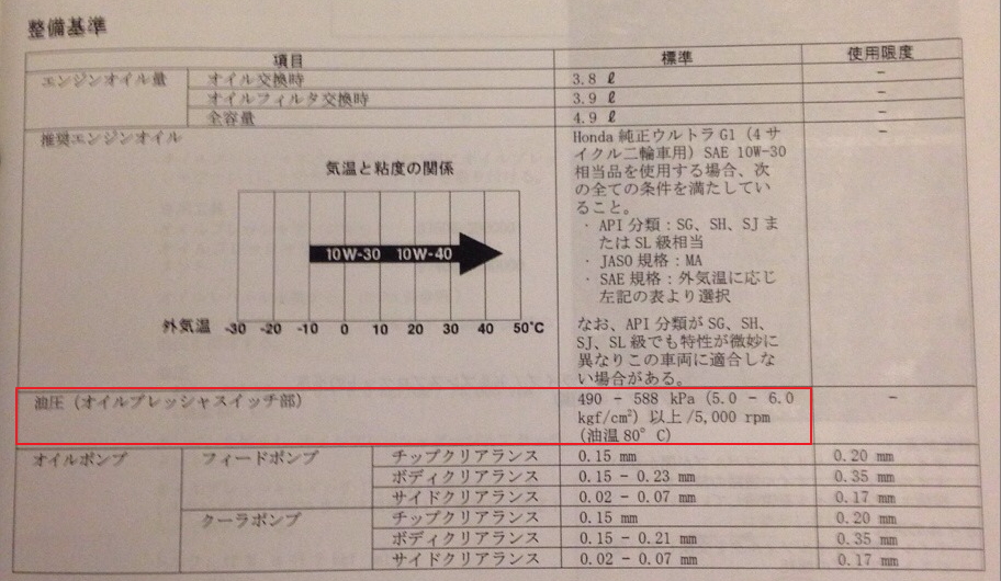 ▲ 機油壓力 490-588kPa / 5000rpm (與CB1100同)