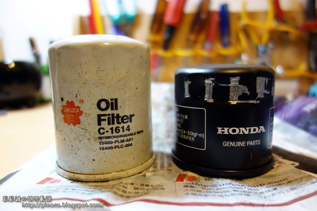 ▲ HONDA CARS 車系原廠機油芯,深藍色是日本製(PN:15400-RTA-003),淺藍色是泰國製(PN:15400-RAF-T01,為目前台灣本田保養廠所使用,廠內價NTD.200)。這兩顆是從HONDA CARS保養廠撿來的!