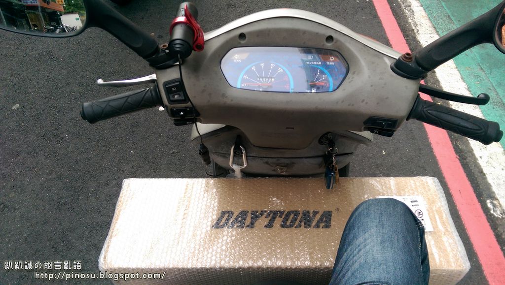▲ 在台北市下班車潮中緩慢前進,終於把貨品載回林口家搂! 大大的 DAYTONA 字樣看起來真爽!!