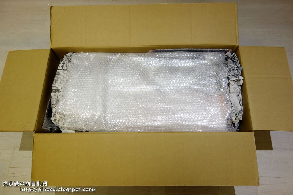 ▲ 開箱拉~~ 塞滿滿的日本報紙與發泡紙。