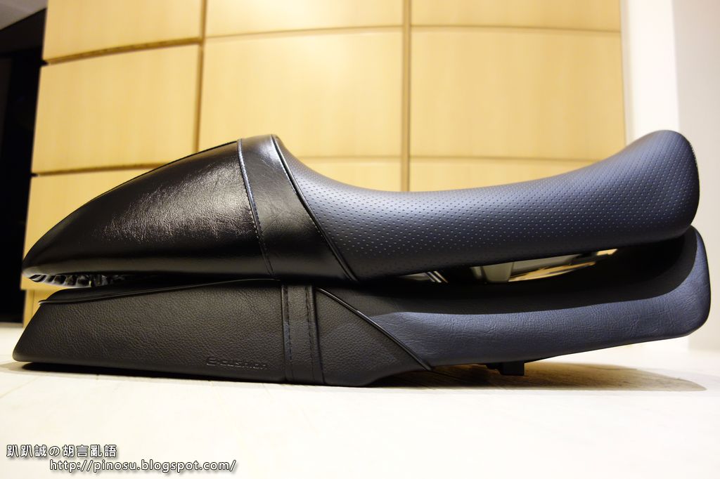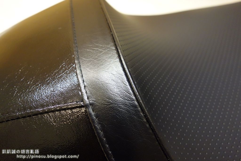 ▲ 坐墊表面使用了三種材質,乘坐位置的部分是摩擦力較高的凹洞霧面皮,中間部分是平光皮,後頭則是亮光皮。