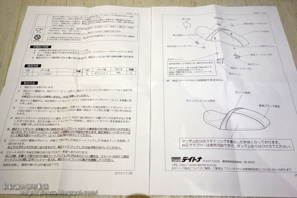 因為偶而還是需要載人,原本的坐墊還是用的到,如果每次換坐墊都在那邊拆拆裝裝也太費事,所以便上網查了一下坐墊那幾個零件的料號,打算買齊裝上以後省事。