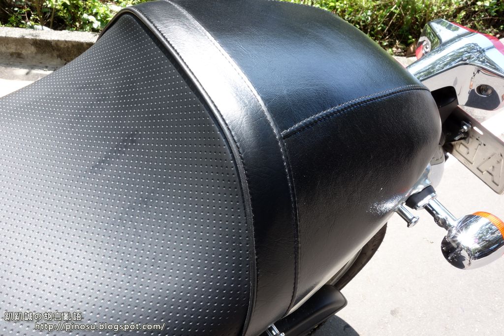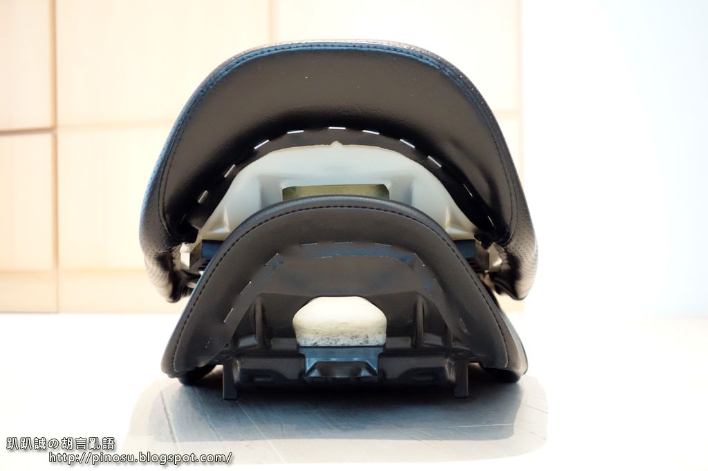 ▲ 這款座墊較厚較寬大些,實際從林口至坪林連續騎乘後的感受較原廠好坐,屁股不會如原廠坐墊那般痠麻,而皮革摩擦力也非常良好,騎乘時不至於有滑動的狀況發生;