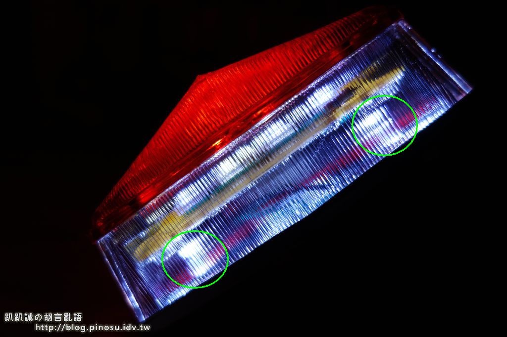 ▲ 電路板後頭就亮起來瞜,也順便增加了下方照射牌照的亮度!