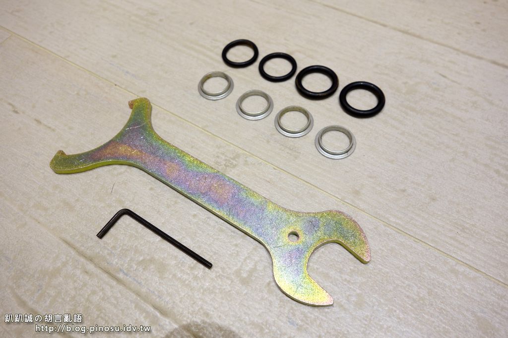 ▲ 內附彈簧調整工具; 下座的大小Oring各兩條、套環四顆。