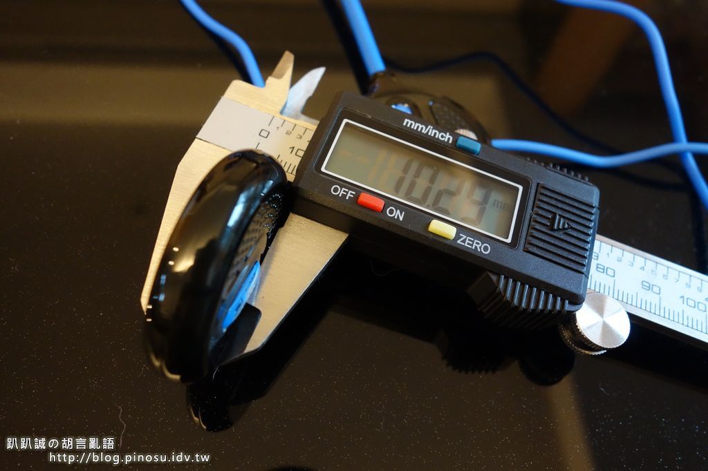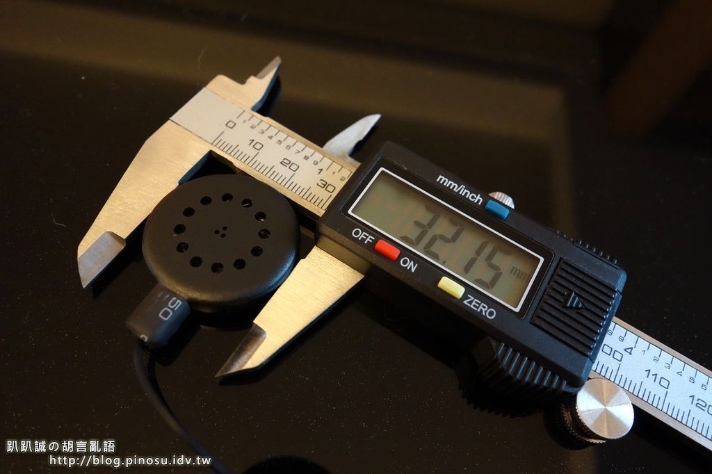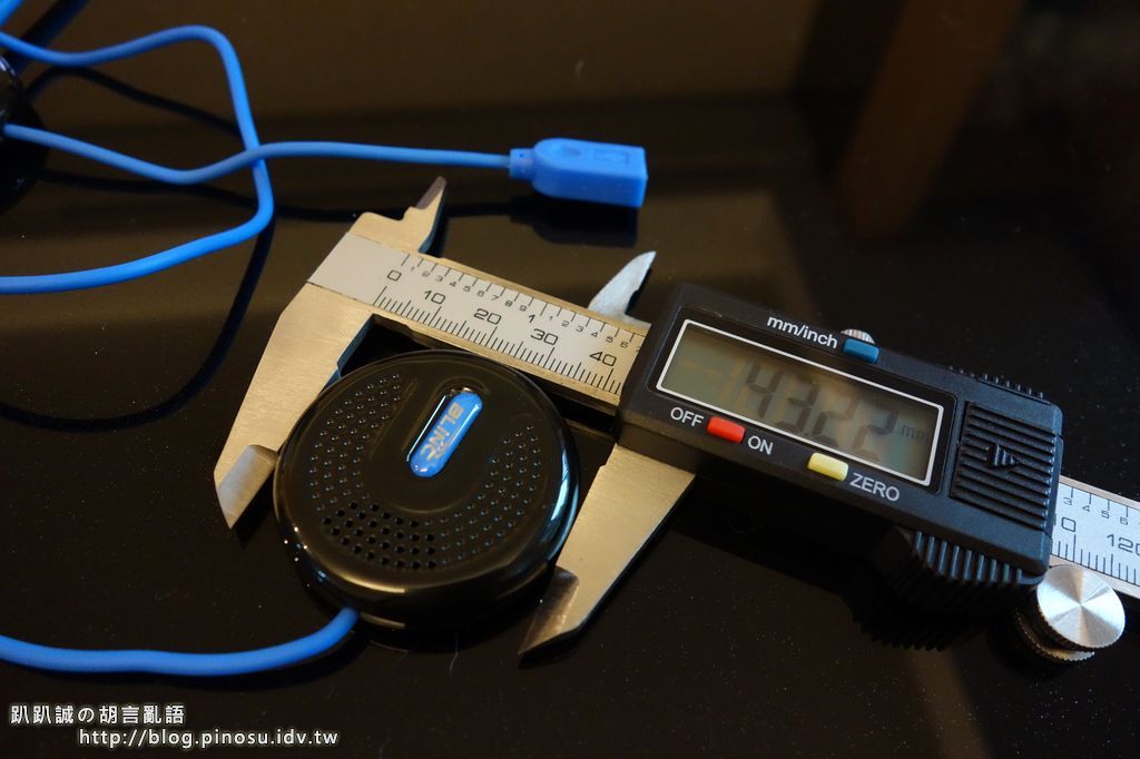 BL-100 最大的賣點就是整合了控制IC及電池在耳機裡,也因此耳機的尺寸用看的就覺得大了些,但到底是大了多少就來量量看吧!!
