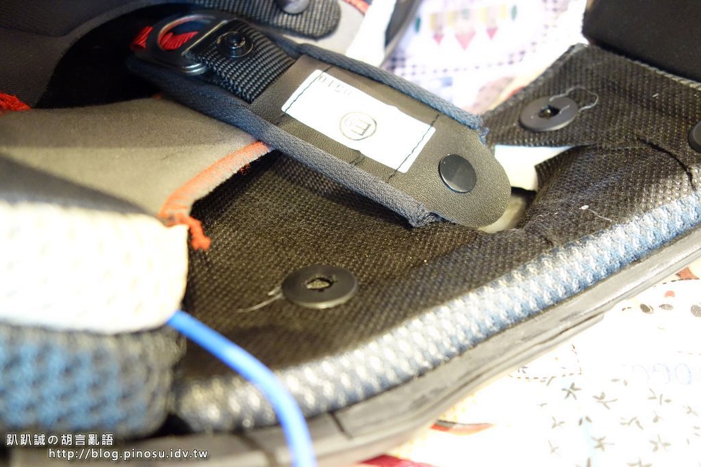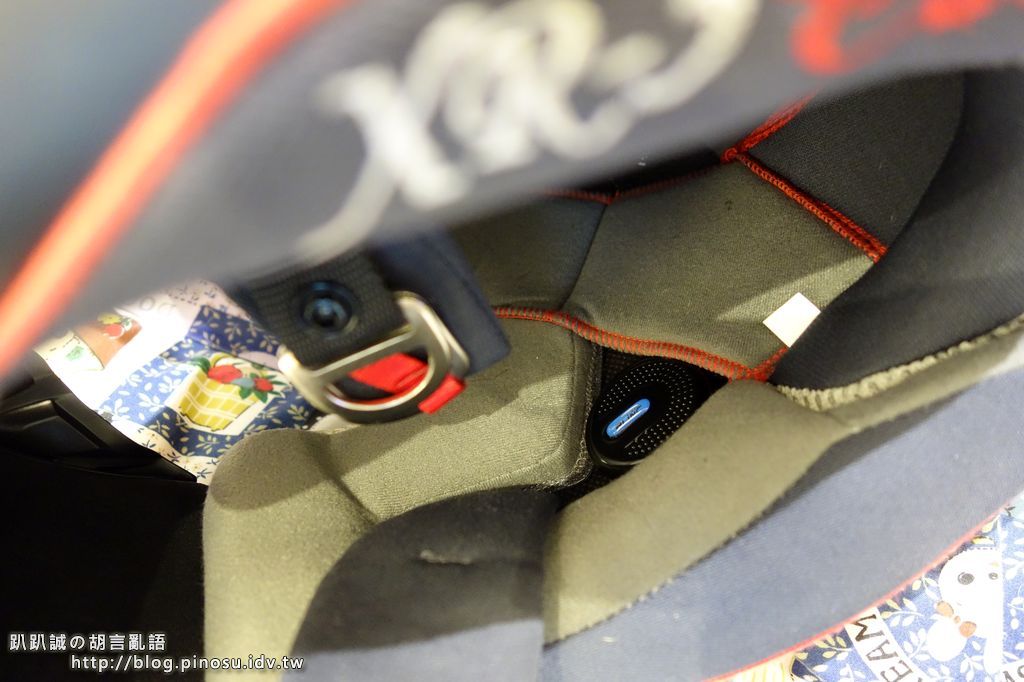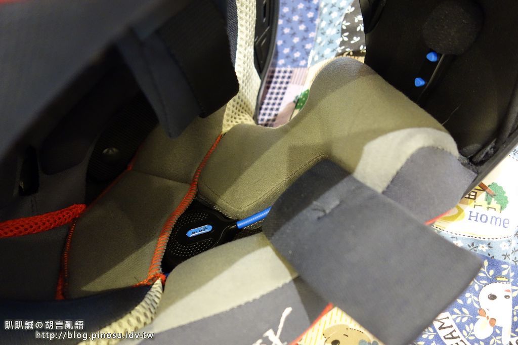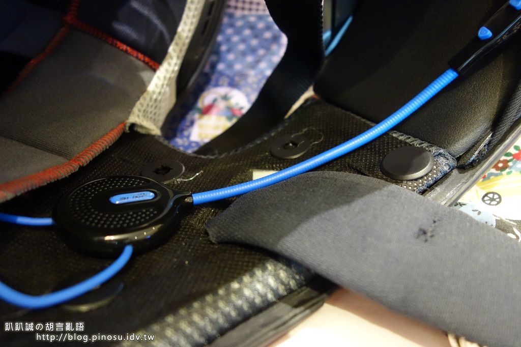 ▲ 但由於我的M2R XR-3這款帽子的內裡即有一層棉布,可以稍稍與耳機端的魔鬼氈黏附,所以安全帽裡就不再貼了。