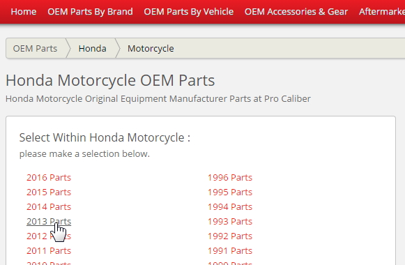 ▲ 有了帳號之後就可以開始選購了! 回到首頁選單【OEM Parts By Brand】,選擇【HONDA OEM Parts】。(謎之音:日系四大品牌都有耶!!)