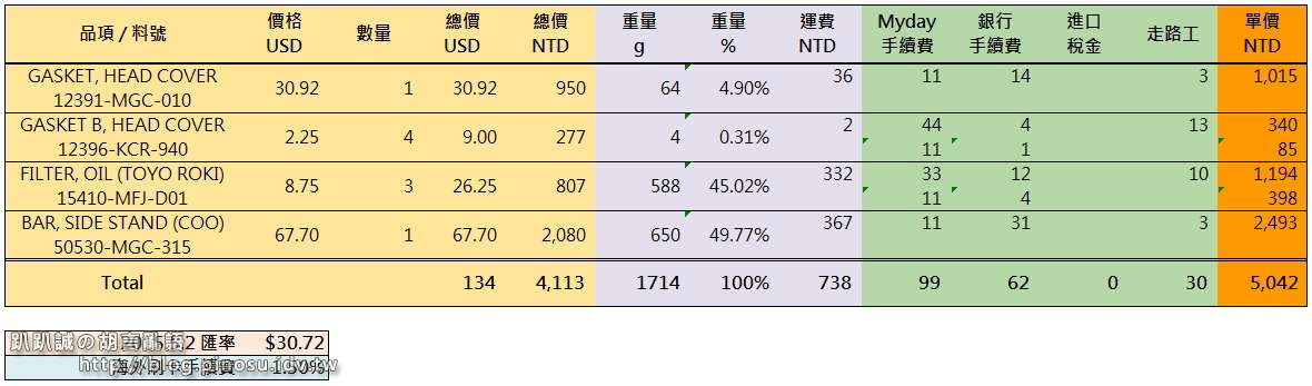 [DIY] 海外訂購重機原廠零件全紀錄 (Myday轉運篇)