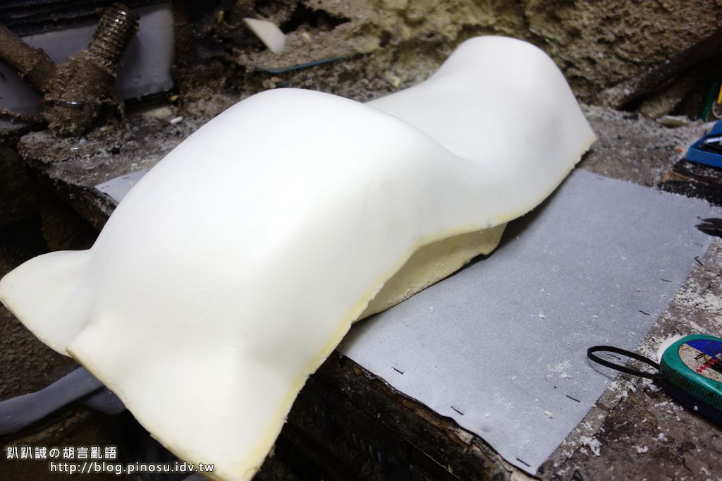 ▲ 因此老闆鋪上一整片泡棉後,順著第一階段切削出來的輪廓再來做第二階段的塑型。