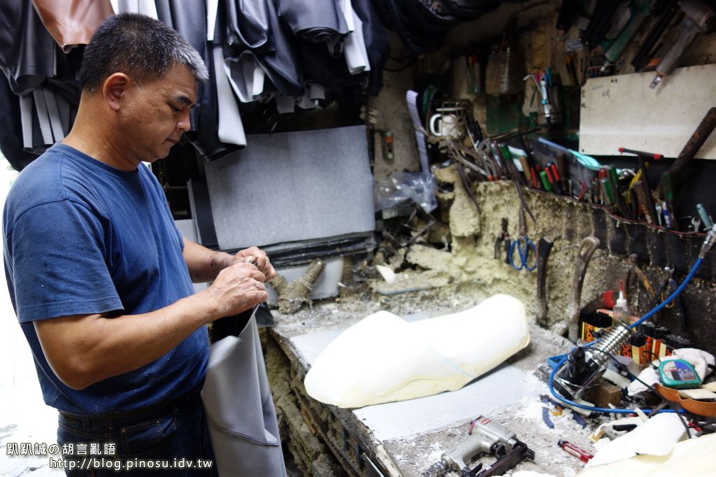 ▲ 新舊泡棉的接合處如果沒有處理好,套上坐墊皮容易被看出破綻(想像一下女生夏天穿T恤,背部內衣隔著衣服透出來的痕跡,大概就是那樣子),因此老闆在每個細節都很用心的修整。