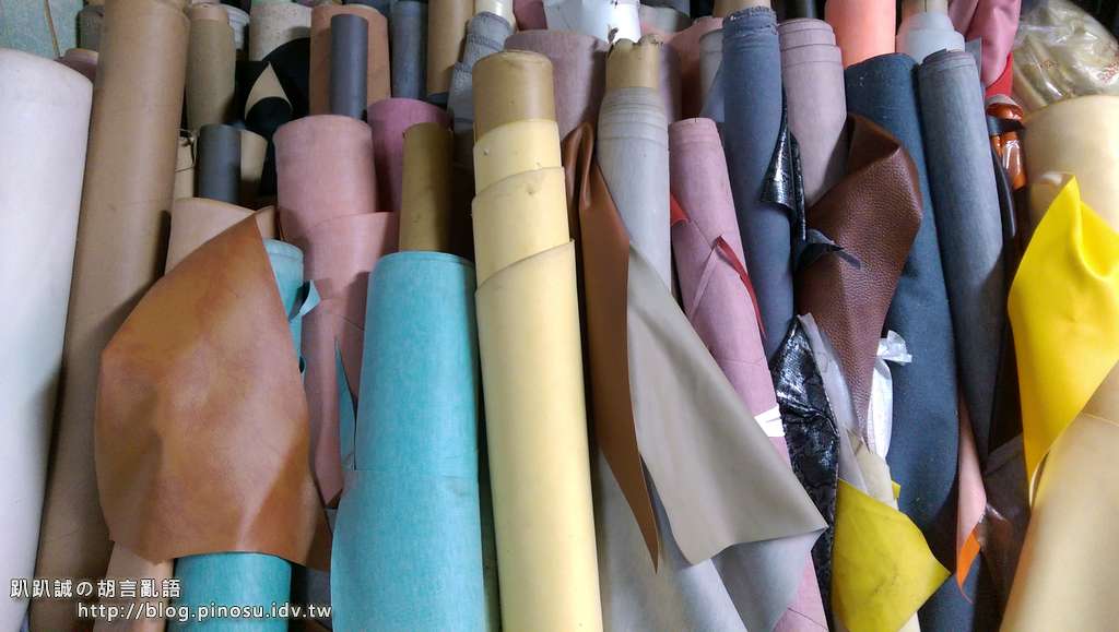 ▲ 老闆沒有將皮革建冊方便客人選擇,一下子也找不到接近的顏色。有了先前的經驗,現場看起來像咖啡色的皮革裝上去都太暗沉,所以翻了半天最後選了最左邊那塊有點橘又帶有花紋的皮。