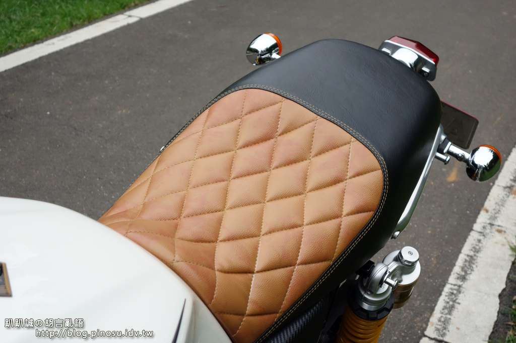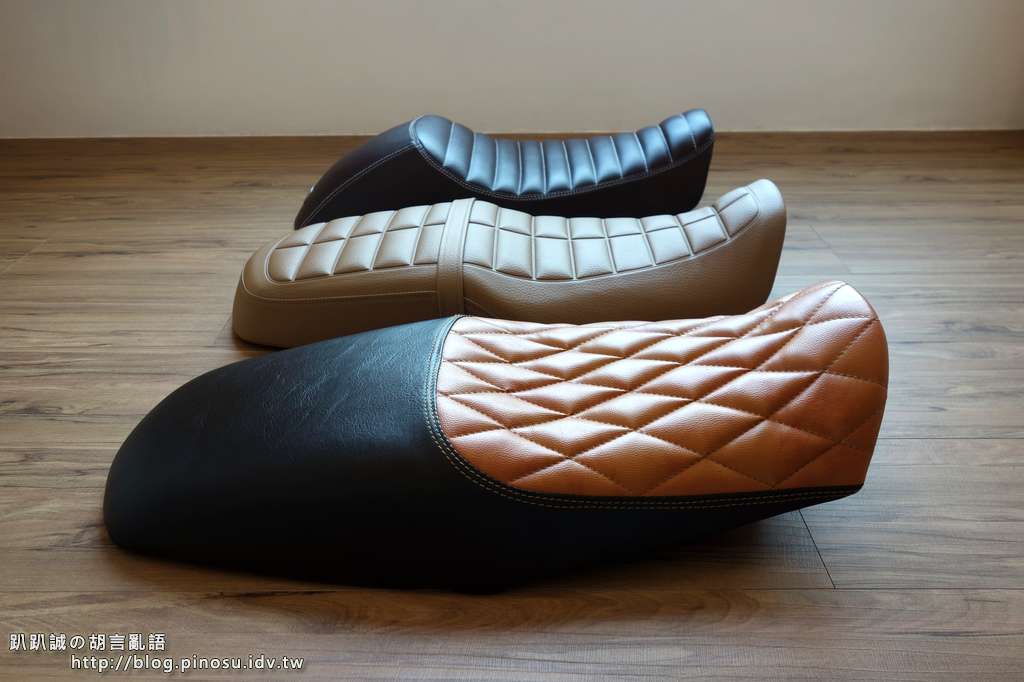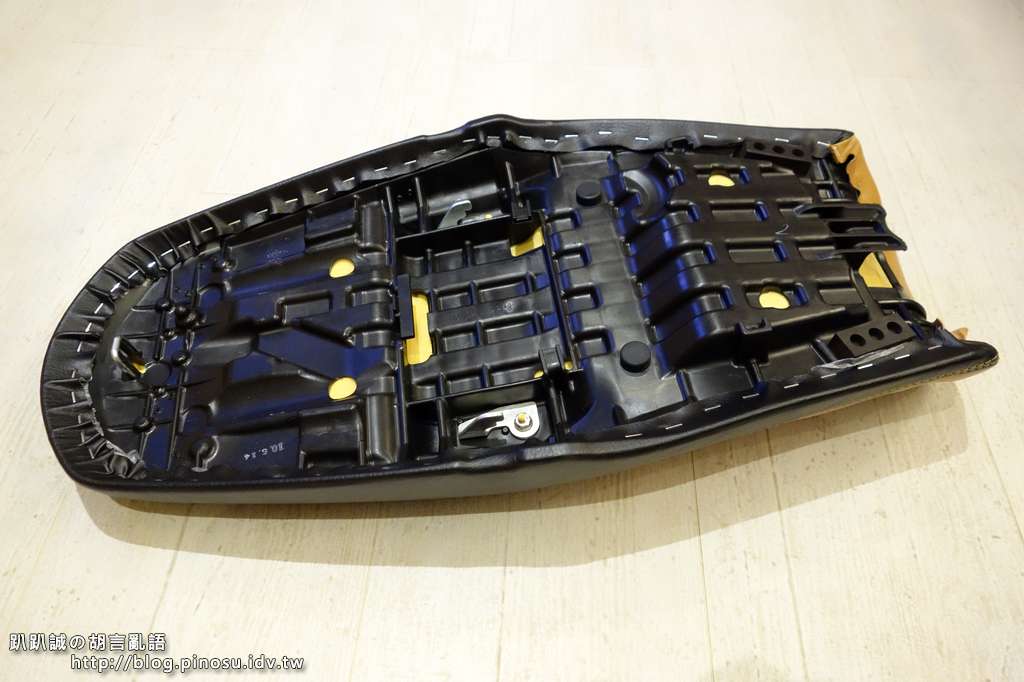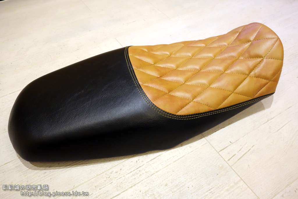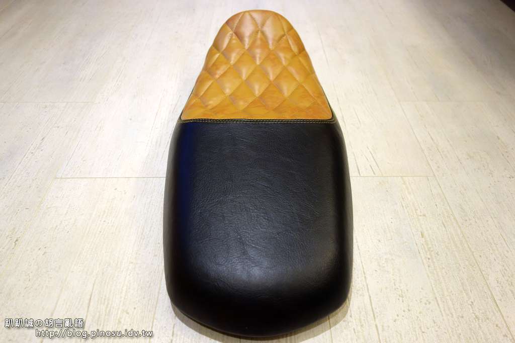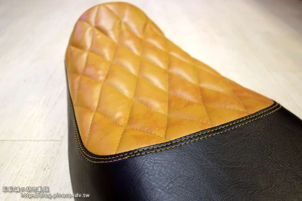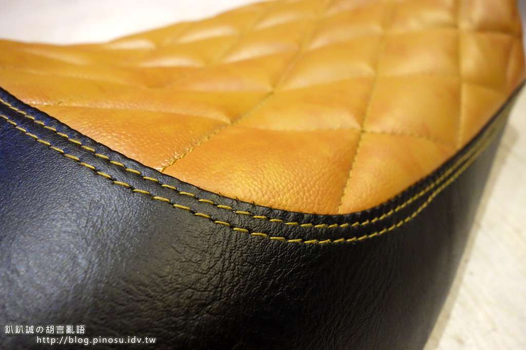 ▲ 前座的泡棉完全維持原廠,但是因為製作菱格紋過程中加入約一公分厚的低密度泡棉,個人覺得有比原廠坐墊舒適一些。