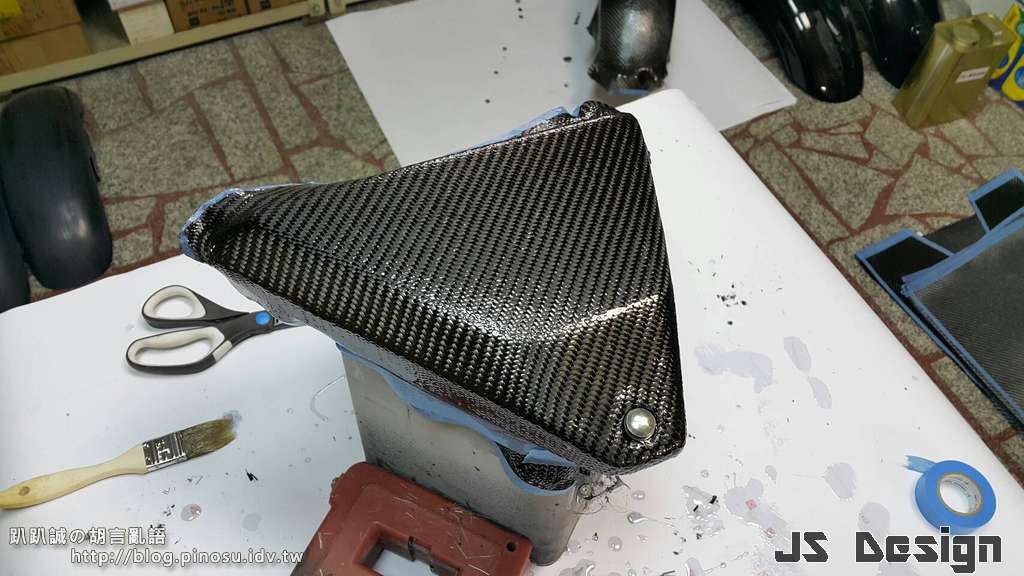 ▲ 在打磨與金油的迴圈之後,波亮的卡夢側蓋出現了!! (大心)