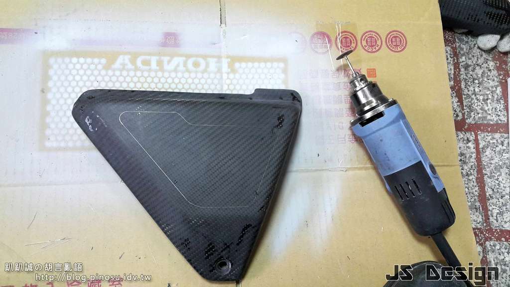 ▲ 漆面去除中… 在一旁備好的是之後要用的的 CARBON 布。