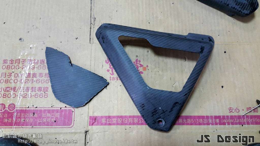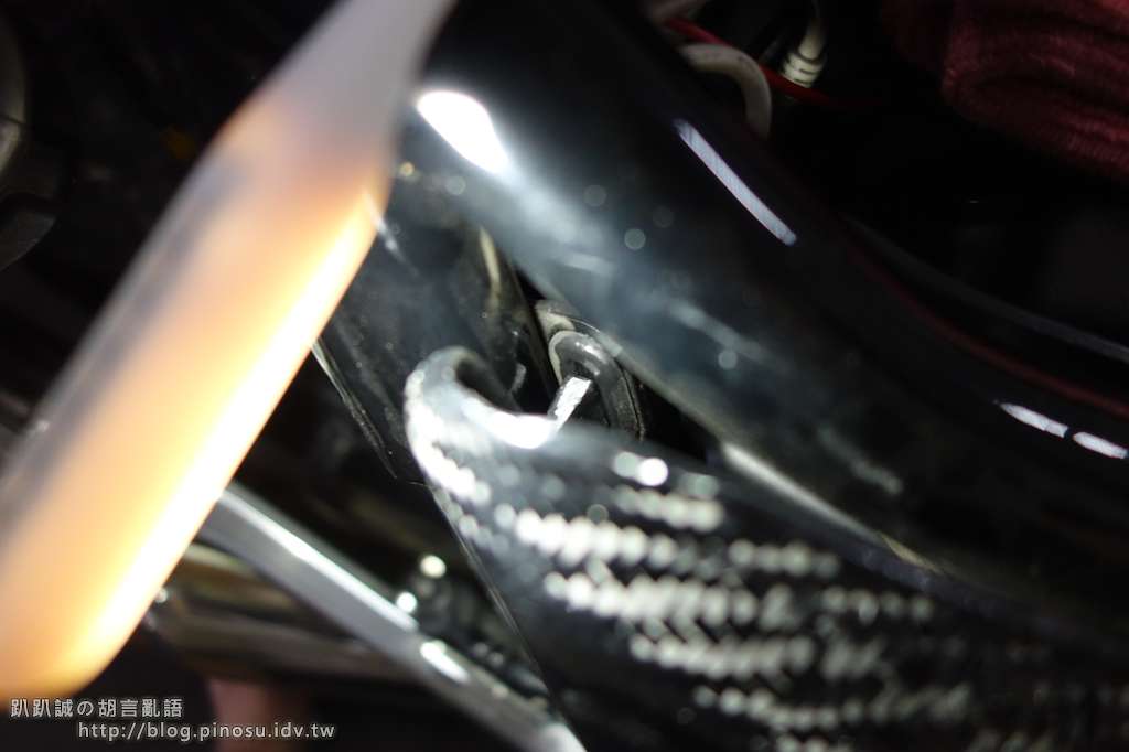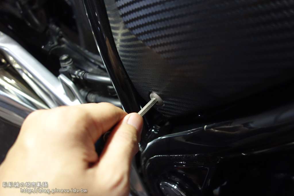 ▲ 螺絲孔的部分也有貼上卡夢布再處理,相信以後要破裂是非常困難的。而原本側蓋破裂也藉由貼上卡夢布之後做了補強,完全看不出曾經是破裂的側蓋。