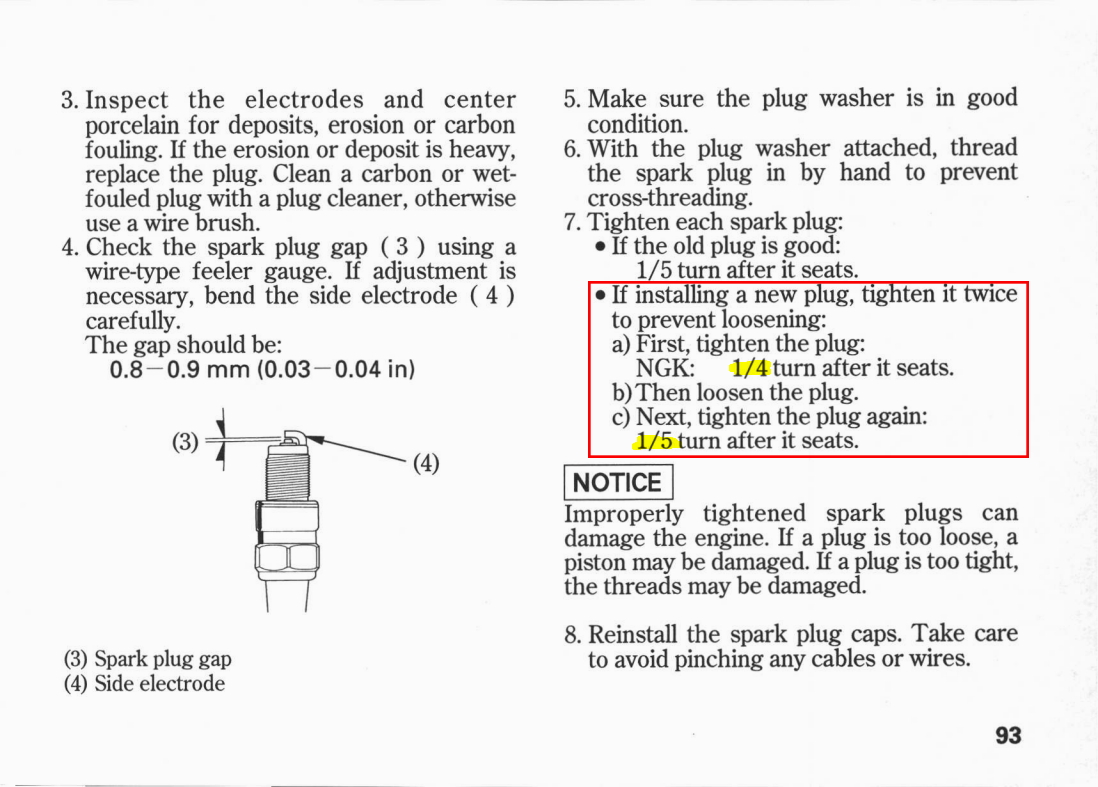 ▲ 依據手冊說明,新品火星塞分兩次鎖緊,第一次先使用工具鎖緊 1/4 圈,然後鬆開再手轉至無法轉動後(到底),使用工具再轉 1/5圈。