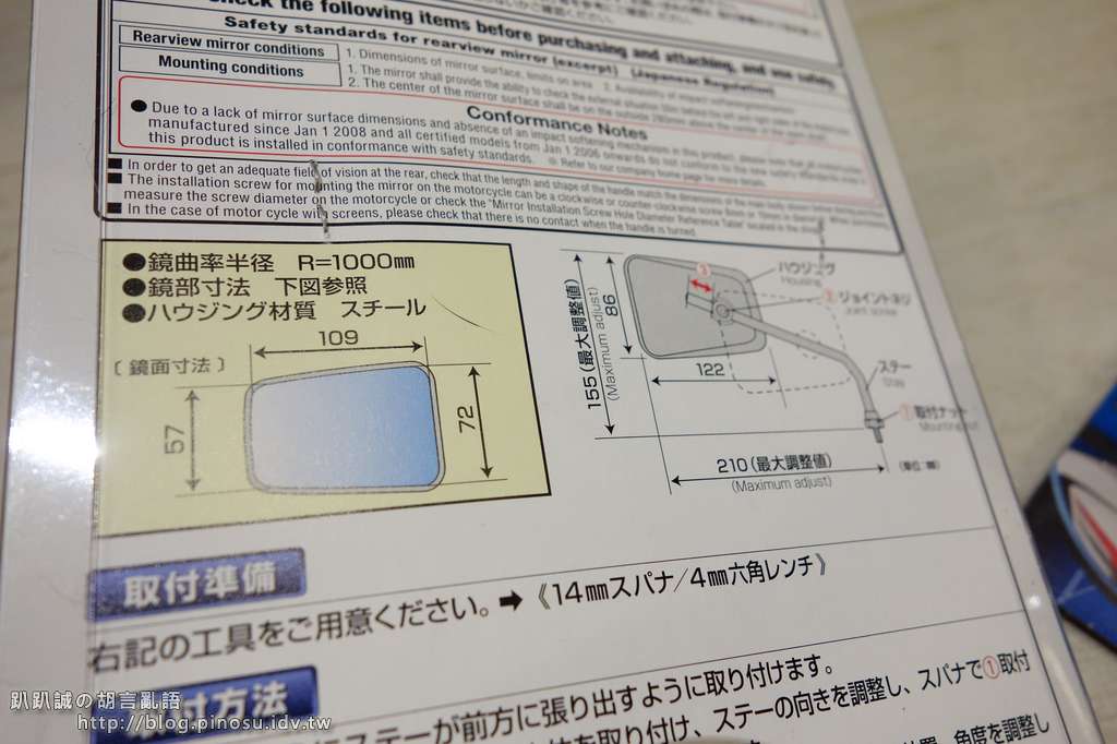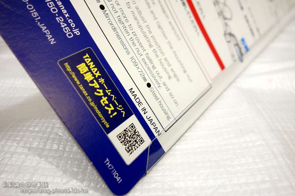 ▲ 這次主角,日本後視鏡大廠 TANAX 出品,型號 AZW-101-10B,結尾有個「B」代表搭載光學藍鏡,是好貨喔。