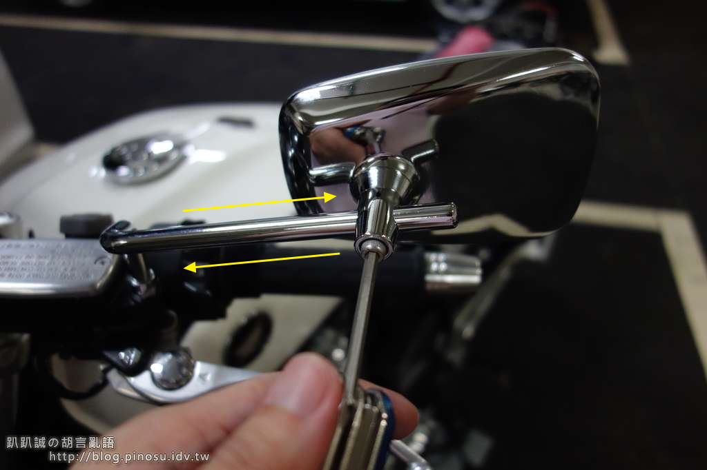 阿呀,又來換裝後視鏡了,其實前面幾組鏡子也沒什麼不好,純粹就是癢癢的想要弄弄車,這大概就是眼睛業障重的一種徵狀,看到車子停在那沒騎時就想搞一下。