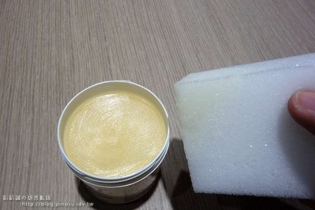 ▲ 不得不說,CARAT皮革油操作性真的不錯,雖然是固態膏狀的,但卻十分容易上油,不必大力推也能均勻將油塗到想要的地方。這一點跟自己先前用過 RS Taich 原廠出品的貂油就差很多。