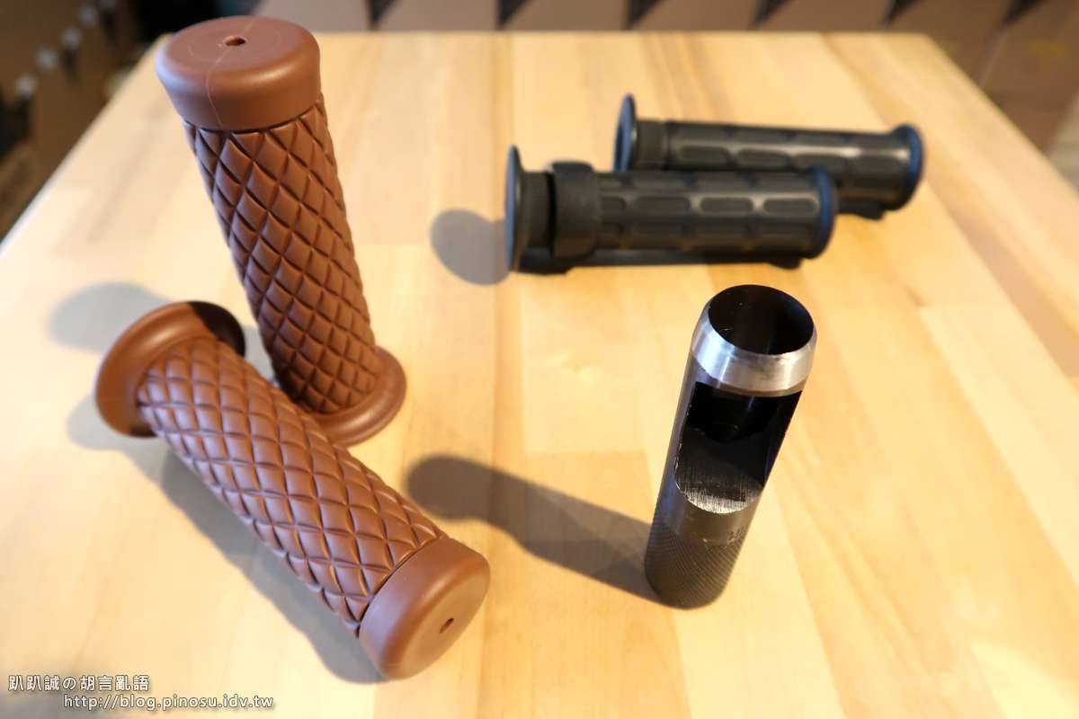 ▲ 握把套是通用款,所以尾端沒有預留端子開孔,要安裝平衡端子或端子鏡的必須要自行開孔。工欲善其事,必先利其器,開孔要挖得漂亮一定要有特工。趴趴在網拍上找了做皮雕用的「圓斬」,工具有分尺寸,這支是20mm (200元),直接壓上就可以挖出20mm的洞。