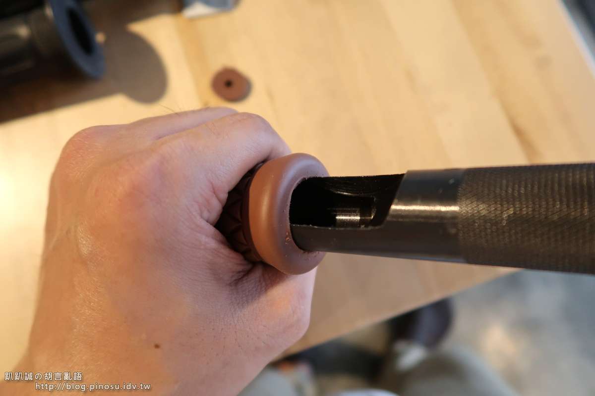 ▲ 套上油門筒身及手把。在握把套尾端左右遙遙同時擠壓,即可將握把套推入,若覺得有點澀也可以加些潤滑劑(羞)或使用氣槍。
