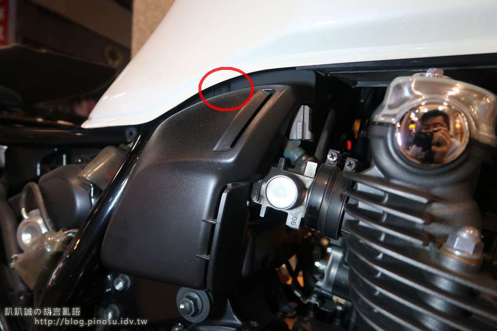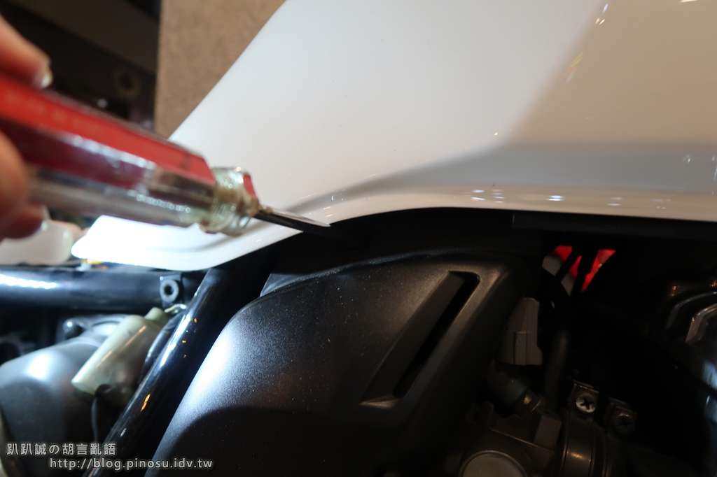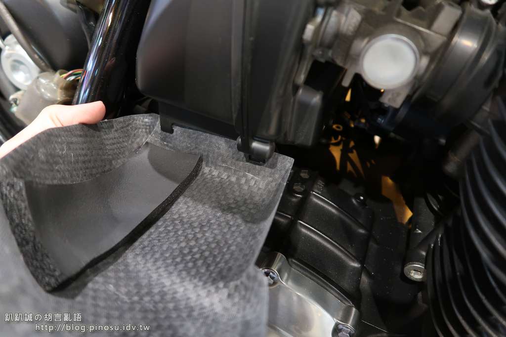 ▲ 開始安裝,集氣箱外蓋的部分只有一根塑膠插扣螺絲固定,為方便施工,先把油箱台高一些會比較好處理。側蓋的部分之前有介紹過,就不特別提了。(有興趣的朋友可以回去翻以前的文章喔)