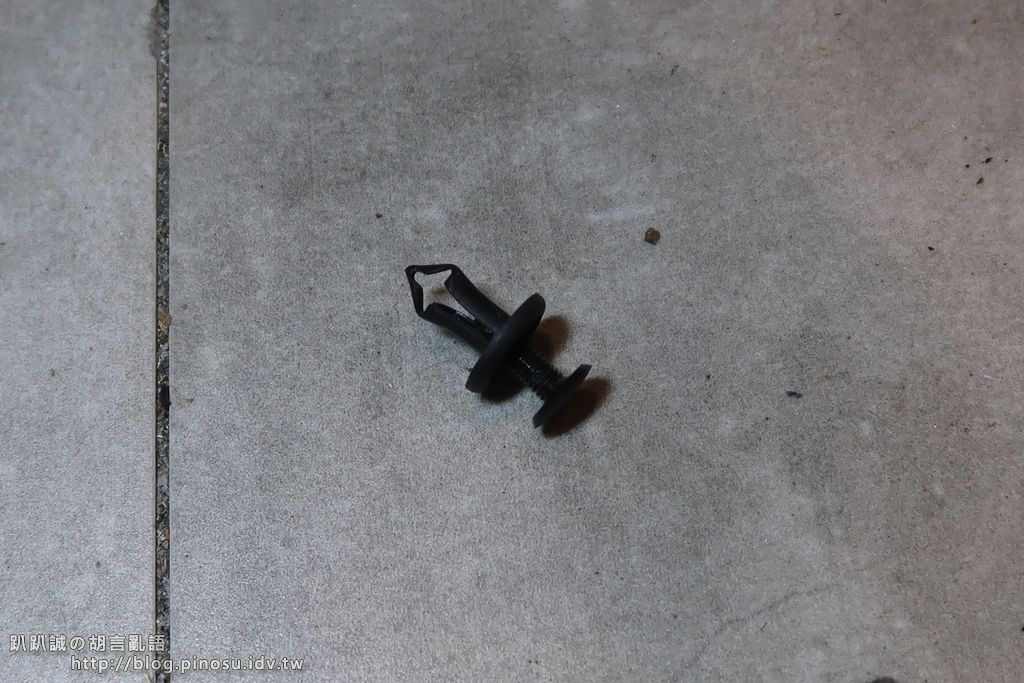 ▲ 插扣長這樣,有羅牙,拆下時要用起子轉鬆;裝上時只要將中間部分壓進去即可。(跟坐墊下置物盒那一顆插扣很像)