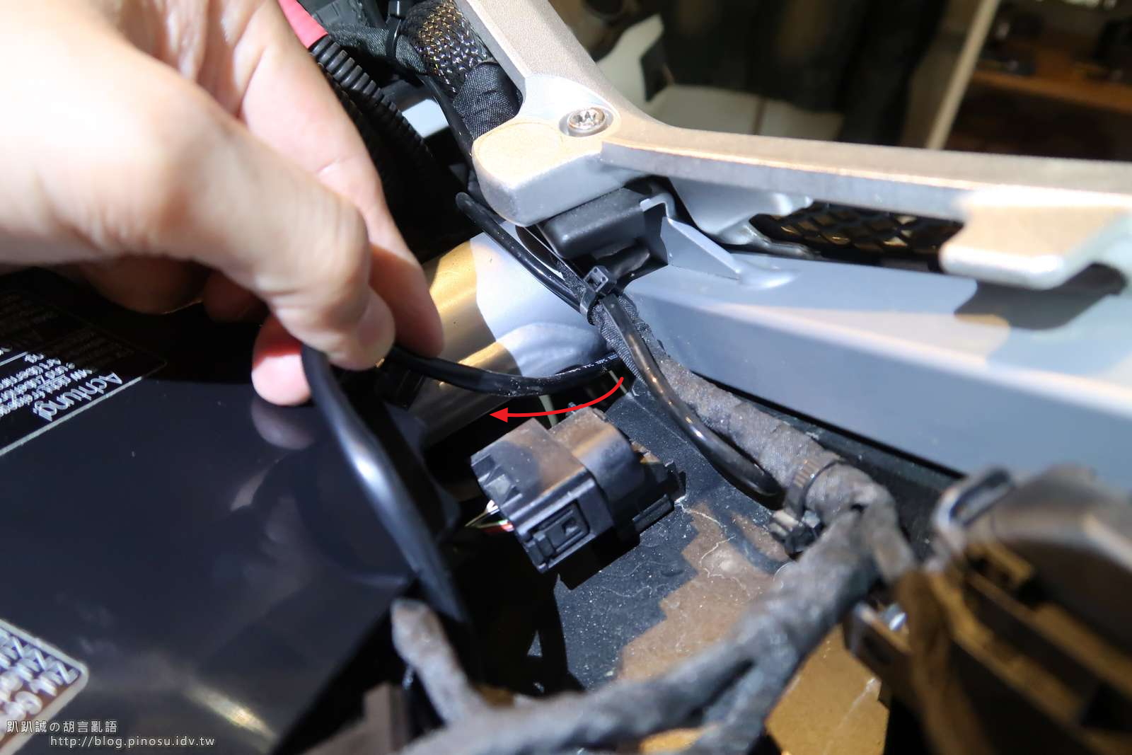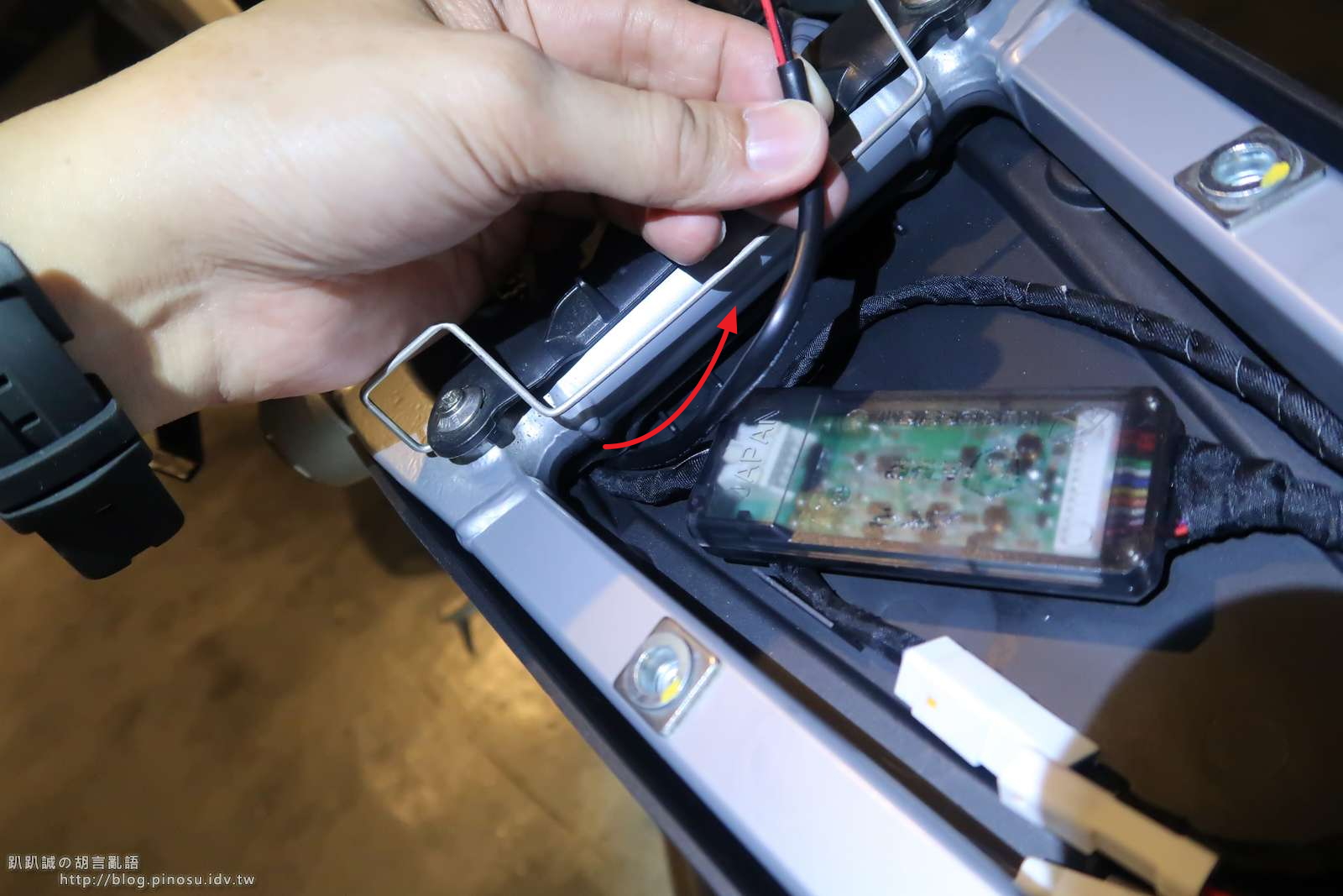 ▲ 再跟著尾燈線組走,拉至後坐墊(後座蓋)下的位置,電線長度整個鋼剛好,不多也不少。
